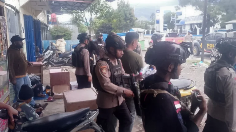 Wamena – Personel Kompi 4 Batalyon D Pelopor Satbrimob Polda Papua melaksanakan kegiatan pengamanan dalam…