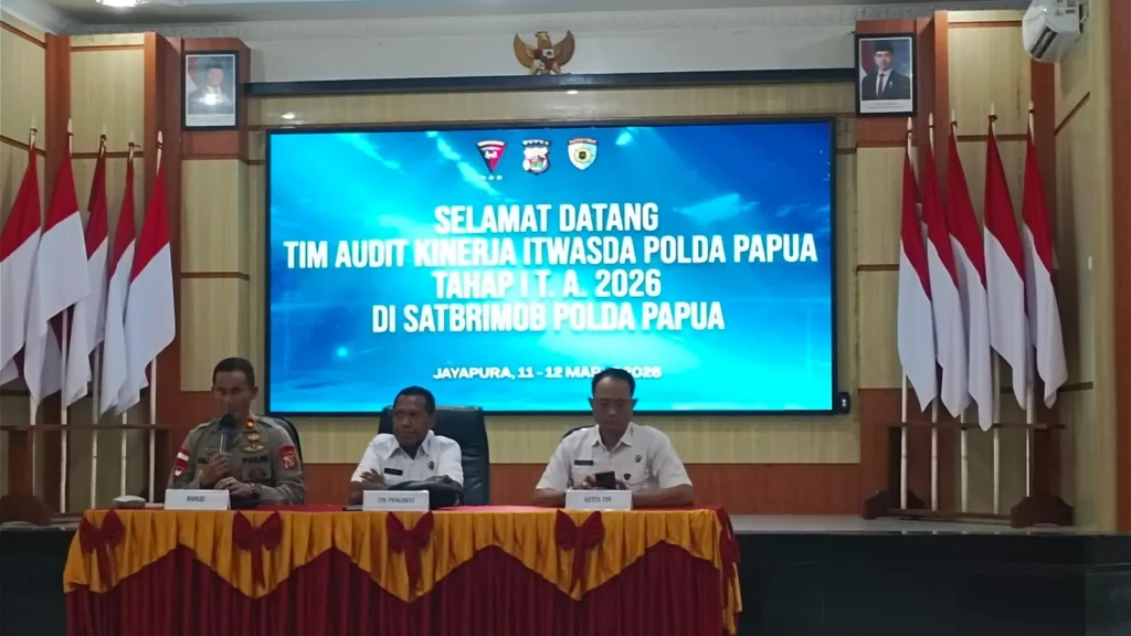 Jayapura – Satuan Brimob Polda Papua menerima kunjungan Tim Audit Kinerja Itwasda Polda Papua Tahap I (Satu) Tahun Anggaran 2026 dalam rangka pelaksanaan pengawasan dan pemeriksaan terhadap pelaksanaan tugas serta pengelolaan administrasi di lingkungan Satbrimob Polda Papua. Kegiatan audit tersebut berlangsung di Mako Satbrimob Polda Papua dan disambut oleh Kabag Ops Satbrimob Polda Papua Kompol…