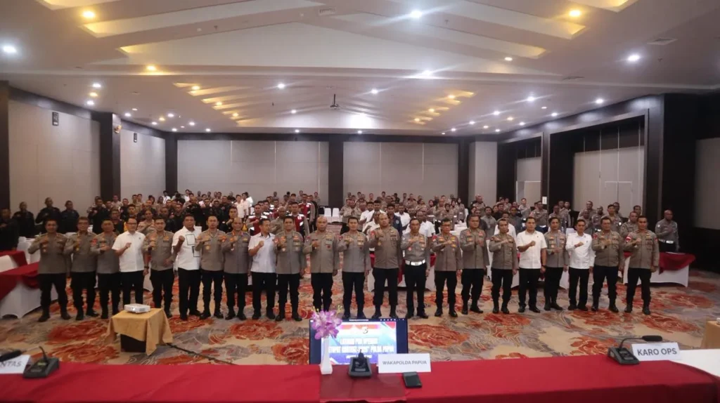 Jayapura – Personel Satuan Brimob Polda Papua melaksanakan kegiatan Latihan Pra Operasi (Latpraops) “Ketupat Cartenz-2026” dalam rangka meningkatkan kesiapsiagaan personel guna mendukung pelaksanaan pengamanan dan pelayanan kepada masyarakat pada perayaan Hari Raya Idul Fitri 1447 H Tahun 2026. Kegiatan tersebut dipimpin langsung oleh Wakapolda Papua dan diikuti oleh personel dari berbagai satuan yang akan terlibat…