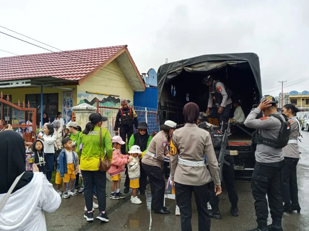 Wamena – Personil Kompi 4 Batalyon D Pelopor Satbrimob Polda Papua melaksanakan kegiatan pengamanan dalam rangka kunjungan siswa-siswi TK Bhayangkari ke Taman Mipirle, Kota Wamena, pada hari ini. Pengamanan dilakukan sebagai bentuk dukungan Polri terhadap kegiatan edukatif anak usia dini sekaligus memastikan seluruh rangkaian kegiatan berjalan dengan aman dan lancar.